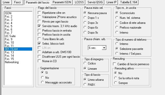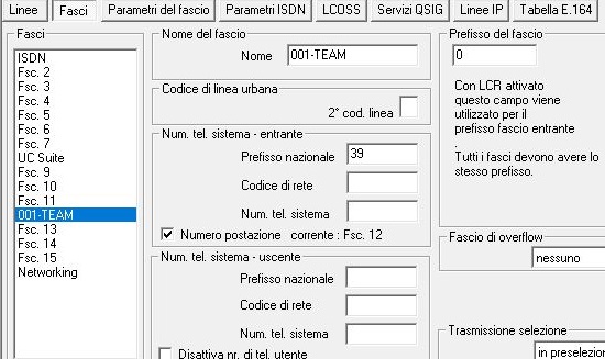 Configurazione fasci Prefisso nazionale e prefisso del fascio