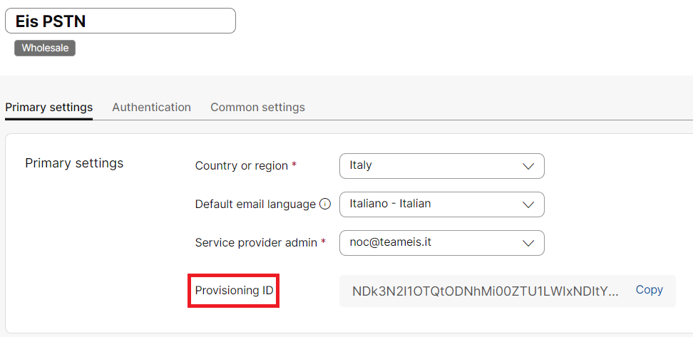 provisioning ID, recuperabile dal template pstn del partner hub webex e inserirlo nel campo apposito del file cfg