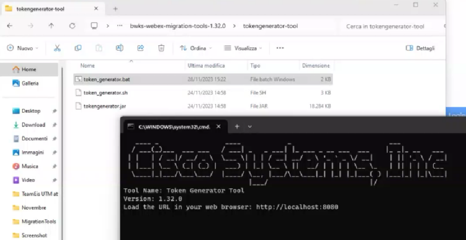 Eseguire il file .bat (doppio clic) e cliccare ctrl+click sul link "localhost:8080" ed eseguire il login con utenza admin del partner hub Webex