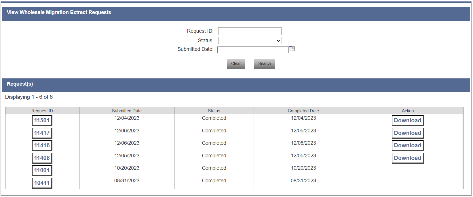 Cliccare Initiate Extract Request